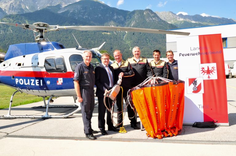 Moderne Löschvorrichtung wurde von LH Günther Platter übergeben – „Bambi-Bucket 1000“ schafft doppelt soviel Löschwasser wie sein Vorgänger! Früher war es ein Löschwasserbehälter mit 500