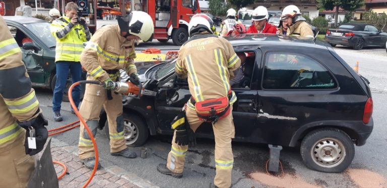 „Verkehrsunfall – Unbekannte Situation, mehrere Personen eingeklemmt und verletzt.“ So lautete der Einsatztext, mit dem die Feuerwehr Tux von der Leitstelle Tirol zu dieser Übung