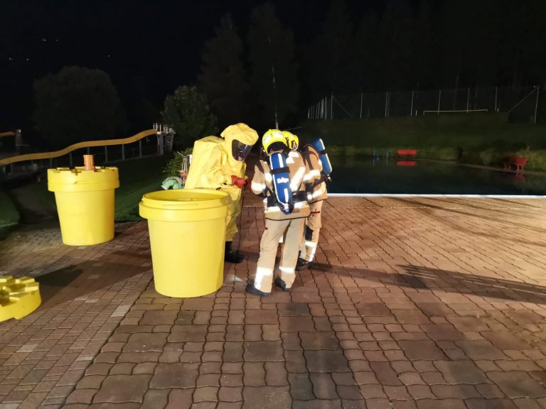 Am Dienstag, 03.09.2019 wurde die Freiwillige Feuerwehr Kirchberg zu einem Chlorgasunfall beim Badesee Kirchberg gerufen. Da die Lage vorerst noch nicht klar war, machten sich