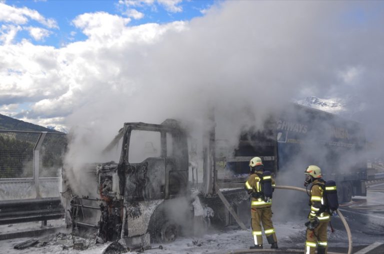 Lkw-Brand auf der Europabrücke