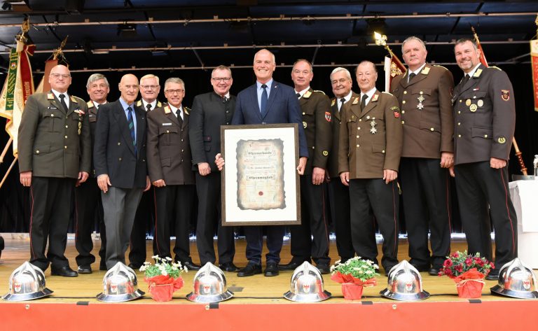 Ehrenmitgliedschaft für Bezirkshauptmann HR Dr. Herbert Hauser beim 137. Bezirksfeuerwehrtag des BFV Innsbruck-Land Mit 284 Delegierten aus 74 Feuerwehren, 52 Bürgermeistern der Gemeinden Innsbruck-Land und