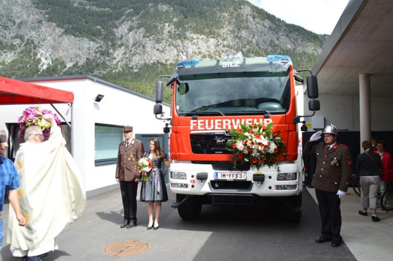 Die feierliche Segnung des neuen TLFA 3000/200 der Feuerwehr Silz erfolgte gemeinsam mit der Einweihung des neuen Gemeindebauhofes und des Bauhofes der Agrargemeinschaft Silz. Am