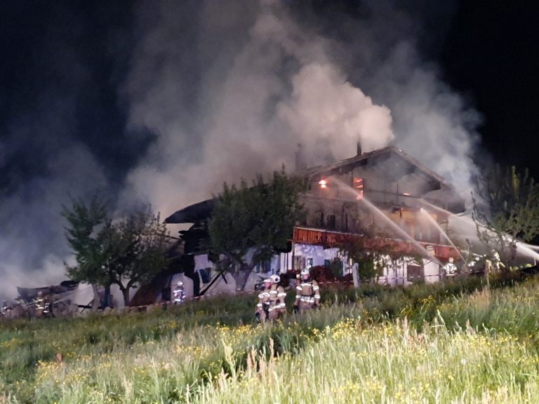 Großen Schaden hat der Brand eines Bauernhofes in der Nacht auf Sonntag in Söll (Bezirk Kufstein) angerichtet. Der landwirtschaftliche Teil wurde komplett zerstört. Auch der