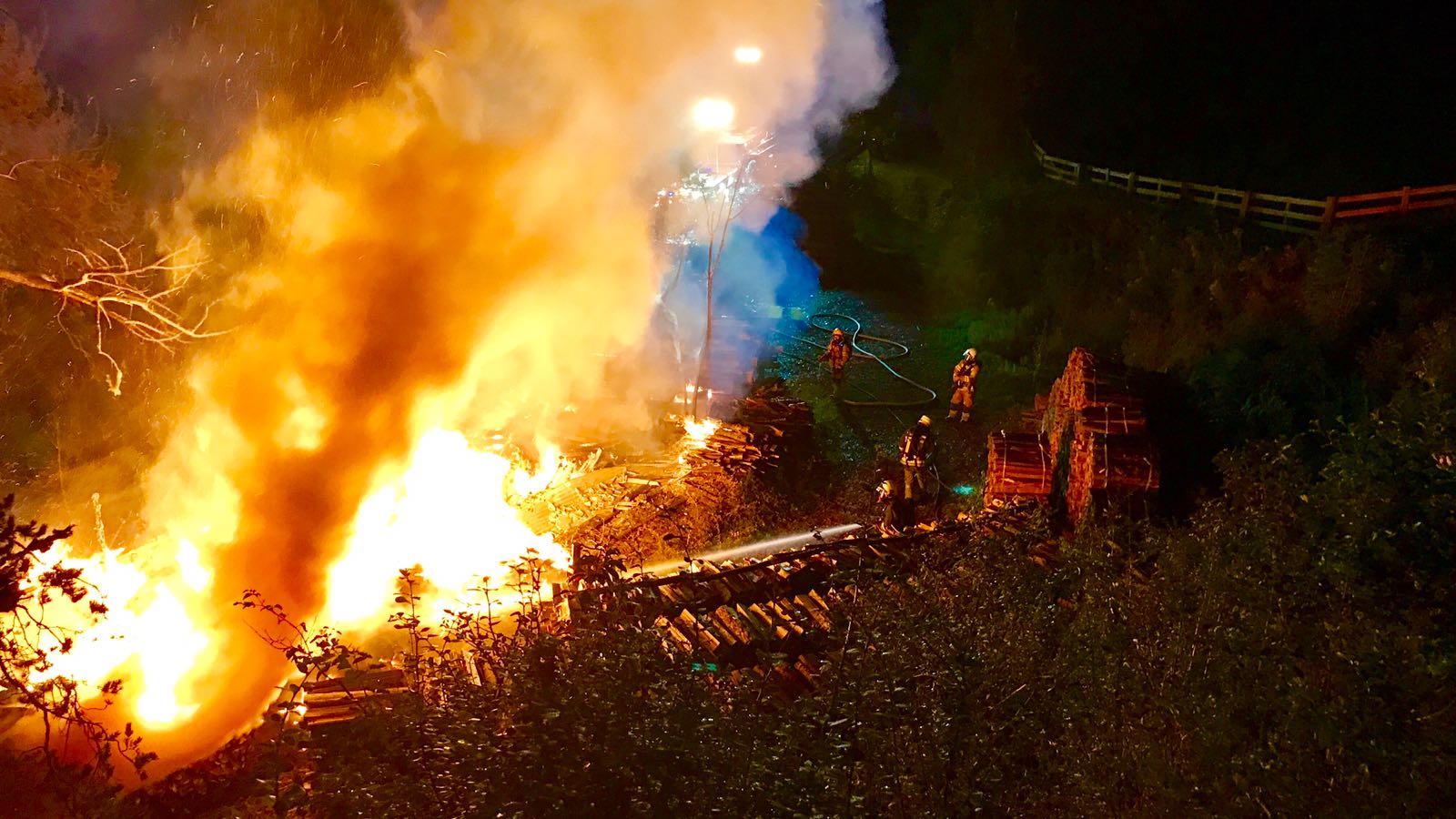 Am Einsatzort eingetroffen stand das Sägewerk aus bisher noch unbekannter Ursache in Vollbrand. Unverzüglich wurde unter schwerem Atemschutz mit den Löscharbeiten begonnen.