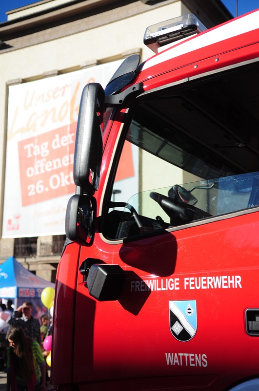 Um die Feuerwehrtechnik nicht zu kurz kommen zu lassen wurden auch Fahrzeuge ausgestellt. Die FF Wattens war mit einem schwerem Rüstfahrzeug (SRF) und einem Tanklöschfahrzeug (TLF) zur Stelle. Die Möglichkeit der Besichtigung wurde ebenso genützt wie "ein Ausflug in luftige Höhen" mit der Drehleiter der FF Telfs, die selbstverständlich von den Experten betreut wurde.