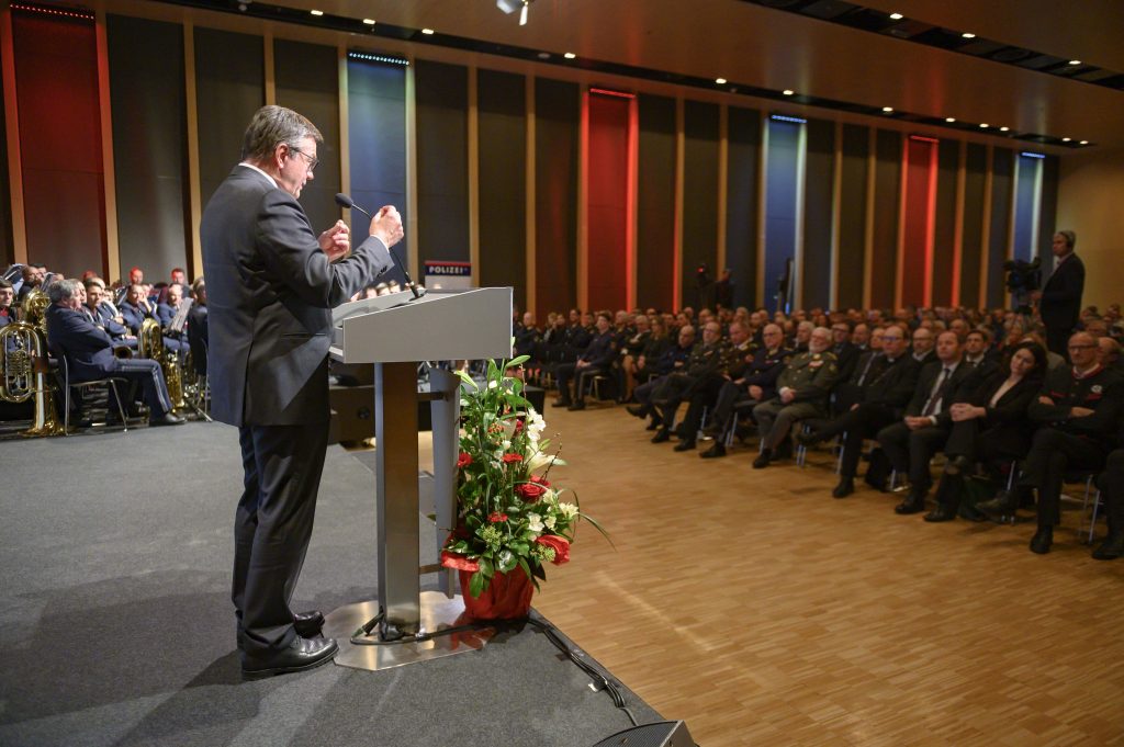 Das Forum 2 der Messe Innsbruck war beim schon traditionellen Sicherheitsempfang des Landes Tirol bis auf den letzten Platz gefüllt: Auf Einladung von LH Günther Platter fanden sich Hunderte Einsatzkräfte der Polizei, Rettung, Bundesheer, Feuerwehr, Berg- und Wasserrettung ein, um gemeinsam das vergangene Jahr Revue passieren zu lassen, gemeisterte Herausforderungen zu analysieren und vor allem, um den wichtigen persönlichen Kontakt zwischen den Einsatzkräften zu stärken.