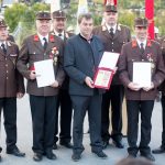 Im Anschluss an den Festgottesdienst mit der Segnung des neuen Gerätehauses durch Hochwürden Bruno Decristoforo folgten die Ansprachen und Ehrungen verdienstvoller Kameraden. Christian Brugger, Walter Lerchbaumer, Helmut Suntinger und Hermann Wiedenhofer wurde vom Bezirks-Feuerwehrkommandanten das Verdienstzeichen in Bronze des Bezirksfeuerwehrverbandes für ihre langjährigen Funktionen im Ausschuss überreicht. Kommandant Ing. Florian Meier und Alt-Kommandant Norbert Brugger konnten aus den Händen von LFK LBD Ing. Peter Hölzl das Verdienstzeichen in Bronze des Landesfeuerwehrverbandes entgegennehmen. Für seine besonderen Verdienste rund um den Bau des neuen Feuerwehrhauses erhielt Bürgermeister Ing. Andreas Pfurner die Florianiplakette in Bronze verliehen.