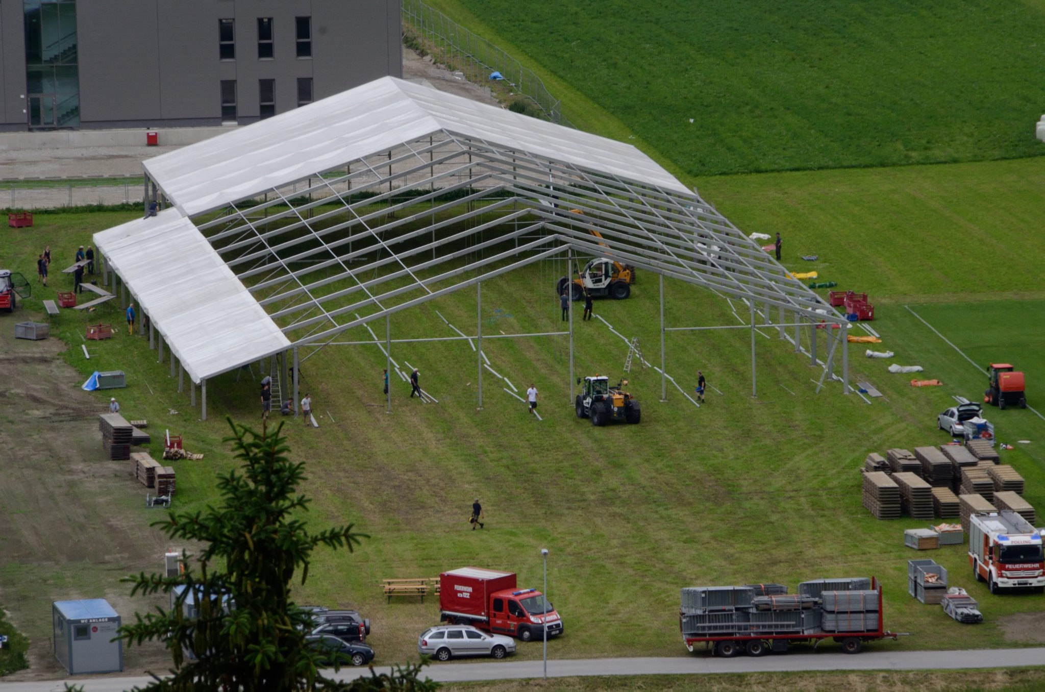 Der Zeltaufbau schreitet voran